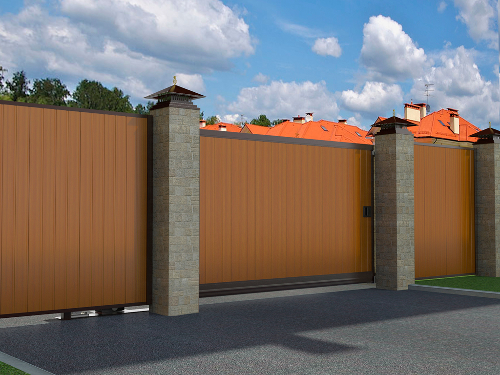 ОТКАТНЫЕ УЛИЧНЫЕ ВОРОТА В АЛЮМИНИЕВОЙ РАМЕ С ЗАПОЛНЕНИЕМ СЭНДВИЧ-ПАНЕЛЯМИ SLG-A